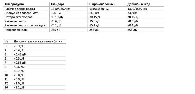 Характеристики волоконного разветвителя FBT-сплиттера