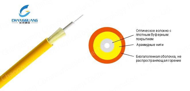 Симплексный волоконно-оптический кабель использует один 900 мкм или 600 мкм волокна с плотными буферным покрытием в качестве элементов оптической передачи, покрывающая снаружи арамидная нить служит силовым элементом, с самой внешней стороны экструдирован ПВХ оболочкой. Возможно по запросу клиентов предоставление оболочек из LSZH и других материалов.
