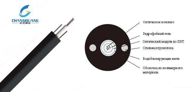 Конструкция кабеля GYXY: ленточные волокна помещены в оптический модуль, изготовленный из высокопрочного пластикового модуля. Модуль заполнен водоотталкивающим наполнителем. Между стенкой модуля проложен водонепроницаемый материал для обеспечения компактности и продольной защиты от влаги кабеля, с двух сторон размещены две параллельные стальные проволоки, после чего покрывается оболочкой из ПЭ.